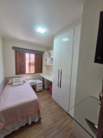 Sobrado com 3 dormitórios suíte sacada , piso laminado , repleto de armários , sobrado mobiliado, garagem ampla com 4 vagas, portão automático , churrasqueira , quintal lateral coberto com vidros , aceita financiamento e FGTS